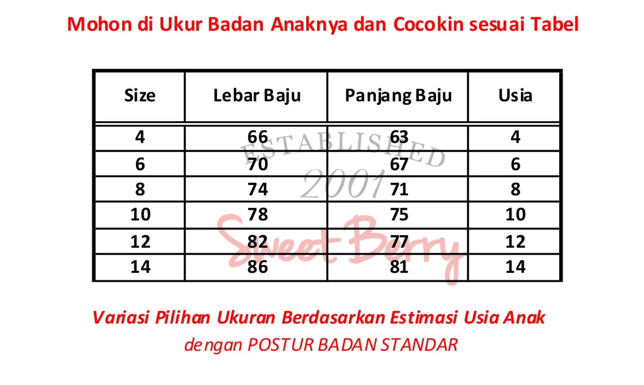 Ukuran baju anak standar terlengkap ahyana hijab.
